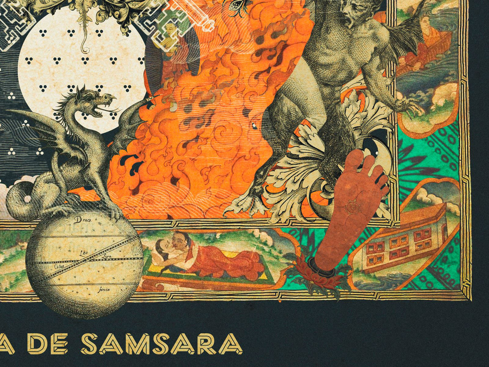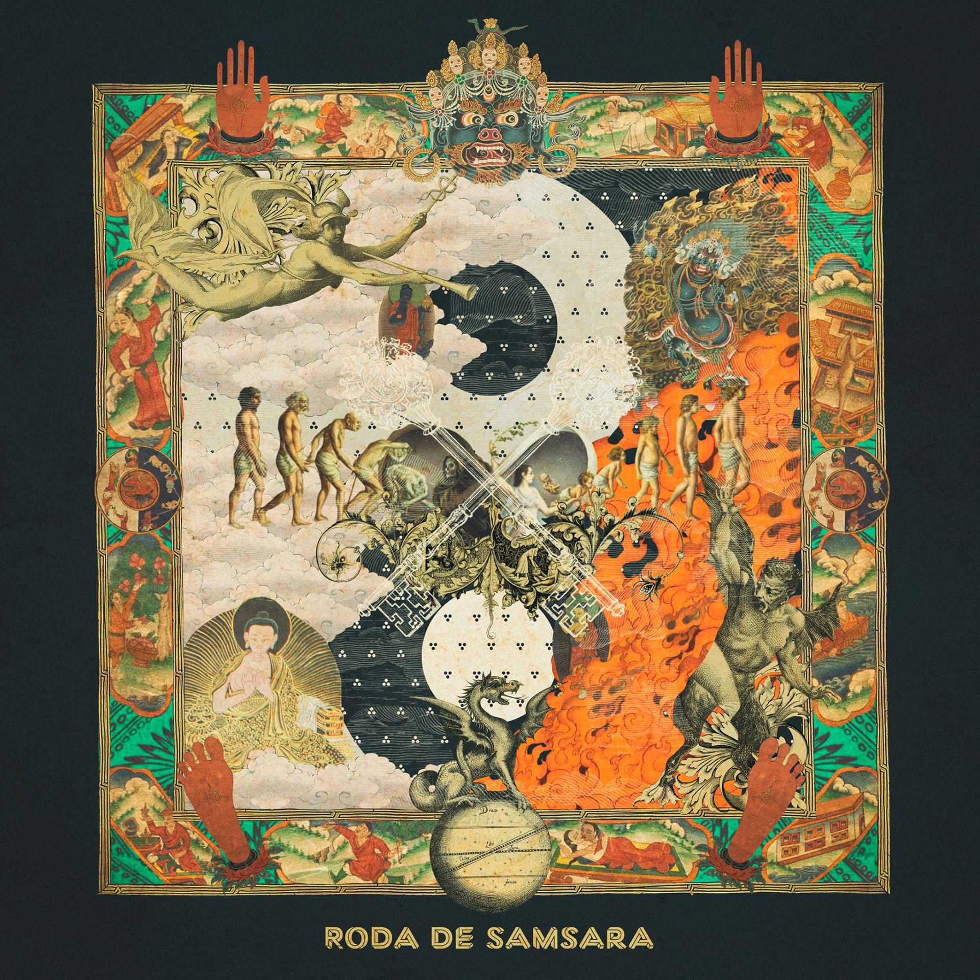 Ilustração para a capa do álbum Roda de Samsara dos artistas Gabriel Manita e Rapha Moraes.